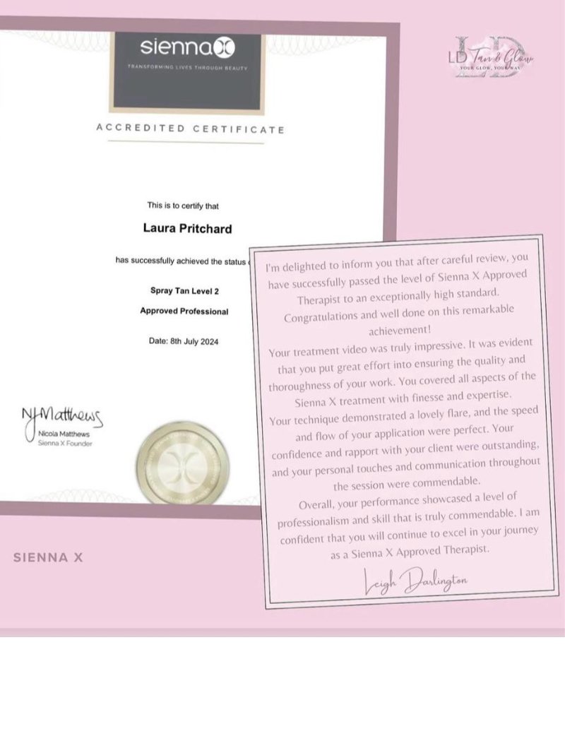 Welcome to LD Tan & Glow! I’m Laura, and a Sienna X Accredited Master Spray Tan Artist, and a qualified cosmetologist.